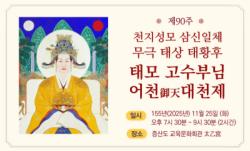 제 90주 천지성모 삼신일체 무극 태상 태황후 태모 고수부님 어천절을 맞아 어천御天대천제를 봉행합니다.○ 일시 : 도기 155년 11월 25일 화요일 (음력 10. 6) 저녁 7시 30분○ 장소 : 증산도 교육문화회관 태을궁(太田) ※ 전 도생은 태모님 어천...