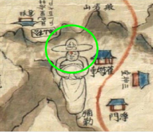 1872년(고종 9년) 제작된 ‘은진지도’에 표시된 은진미륵의 보관에 불상이 표시되어 있다. | 신은영의 논문에서