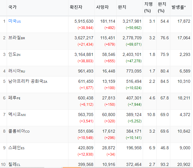 전세계확진자 23,809,462(+170,551) 사망822,626(+3,582) 발병국214개국(-)